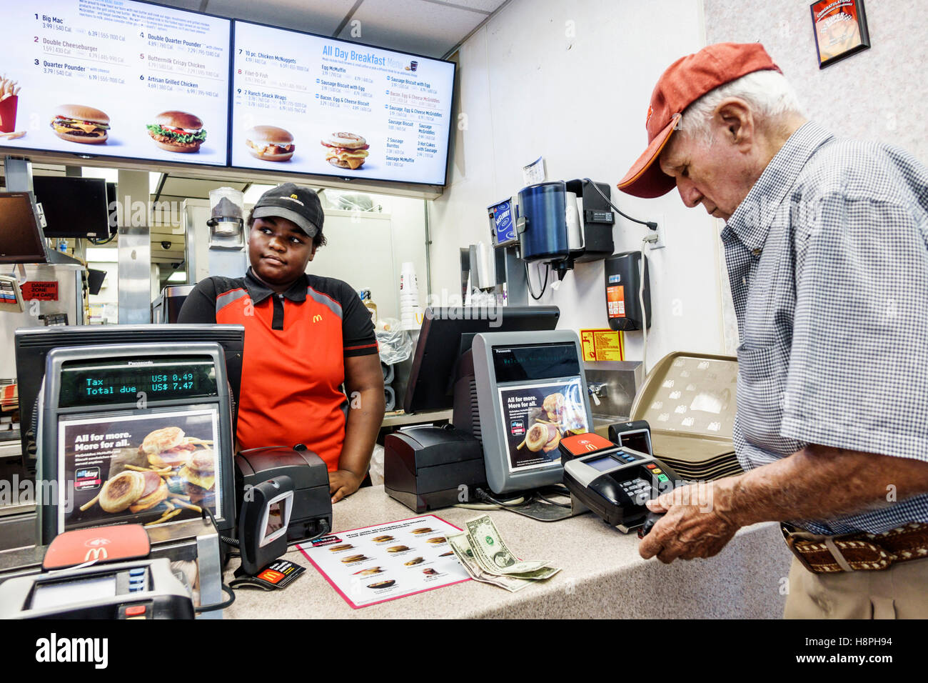 Florida Vero Beach Mcdonald S Restaurant Fast Food Interior Counter Cashier Black Teen Stock Photo Picture And Rights Managed Image Pic G14 2766087 Agefotostock
